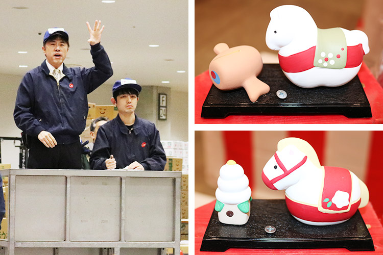 船首には、今年の干支である午の飾りがあしらわれており、落札後には、宝船の記念写真を撮る方の姿が多く見られました。
