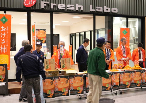 10月24日(木)、早朝より新潟県JA佐渡の皆様によるおけさ柿の試食宣伝が開催されました。