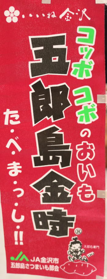 コッボコボ(石川県の方言で「ほくほく」)で優しい甘みが特徴。焼き芋やふかし芋がおすすめ。(五郎島金時)