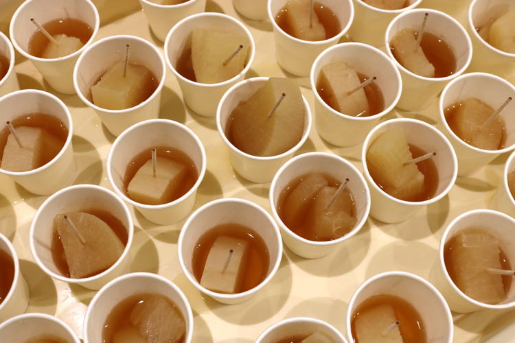 じっくり煮込んでも煮崩れしない金沢おでん定番の一品。(源助だいこん)