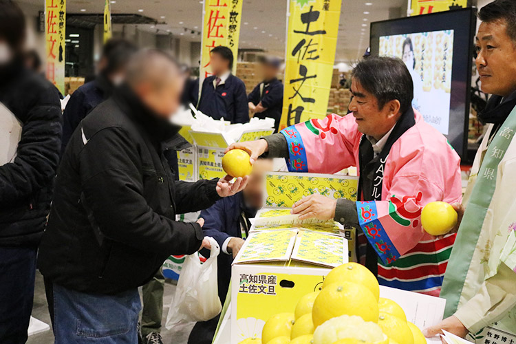 本日は、JA高知県および高知県東京事務所の皆様に、出荷最盛期を迎える土佐文旦の魅力を広くPRしていただきました。