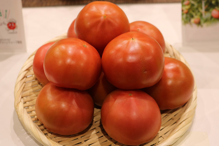 バラ、袋詰め、パックと多様な出荷形態のトマトが展示されました。
