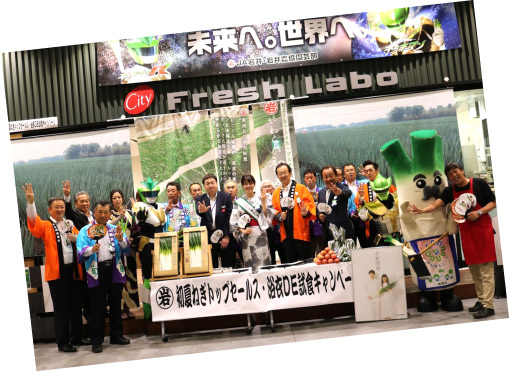 続いて挨拶に立った木村敏文坂東市長は「坂東市は自然豊かなところです。岩井は初夏ねぎの銘柄産地、安全、安心のおいしいねぎを作っています。東京の皆さんに味わっていただきたい。坂東市はねぎに限らず、野菜も作っています。今後とも、岩井のねぎ、坂東の野菜をよろしくお願いします」と話されました。