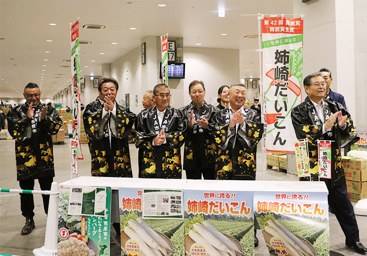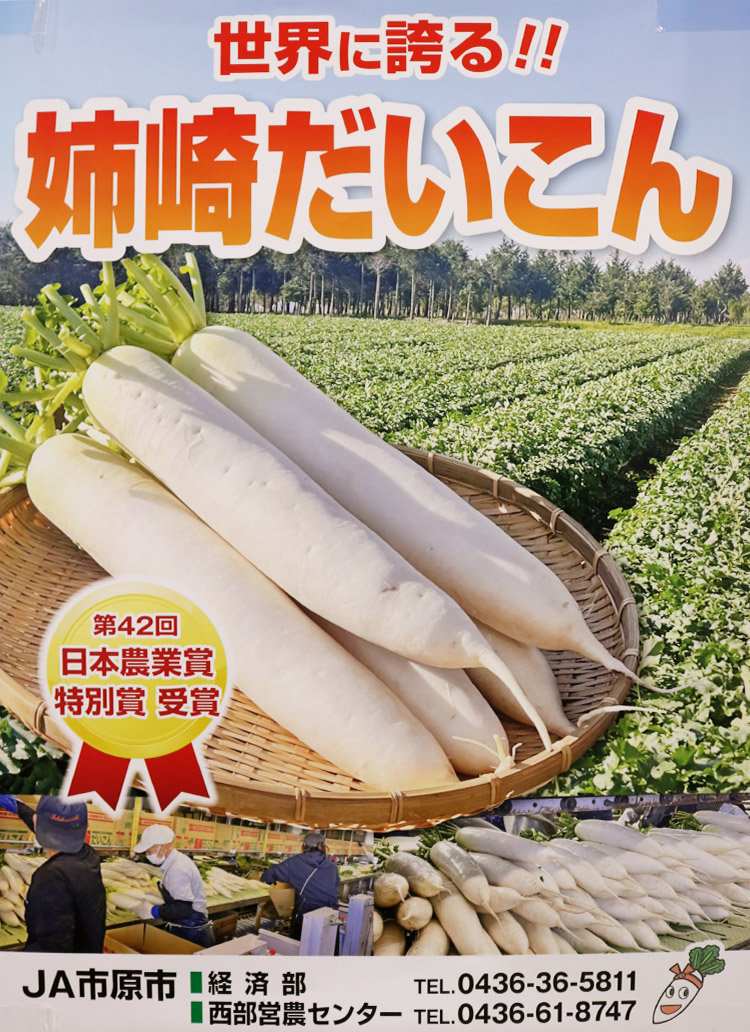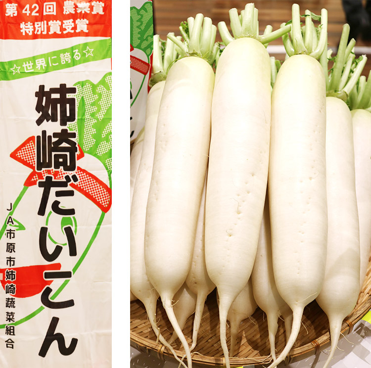 秋冬野菜の主力商品である「姉崎だいこん」と