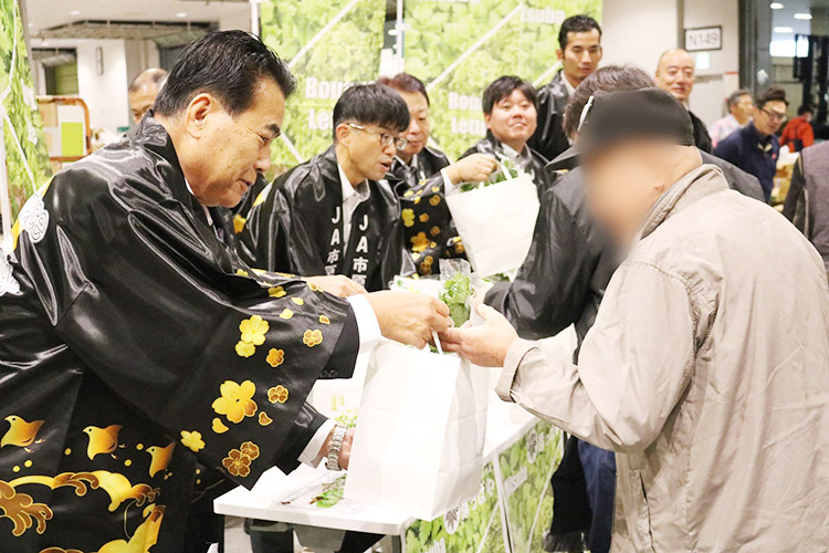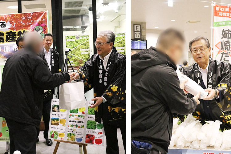 場内の皆様には市原市産スペシャル野菜セットが配布されました。