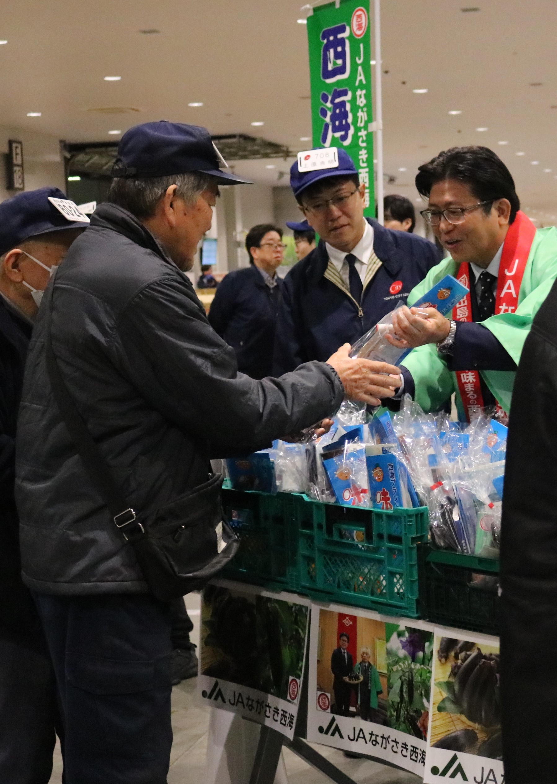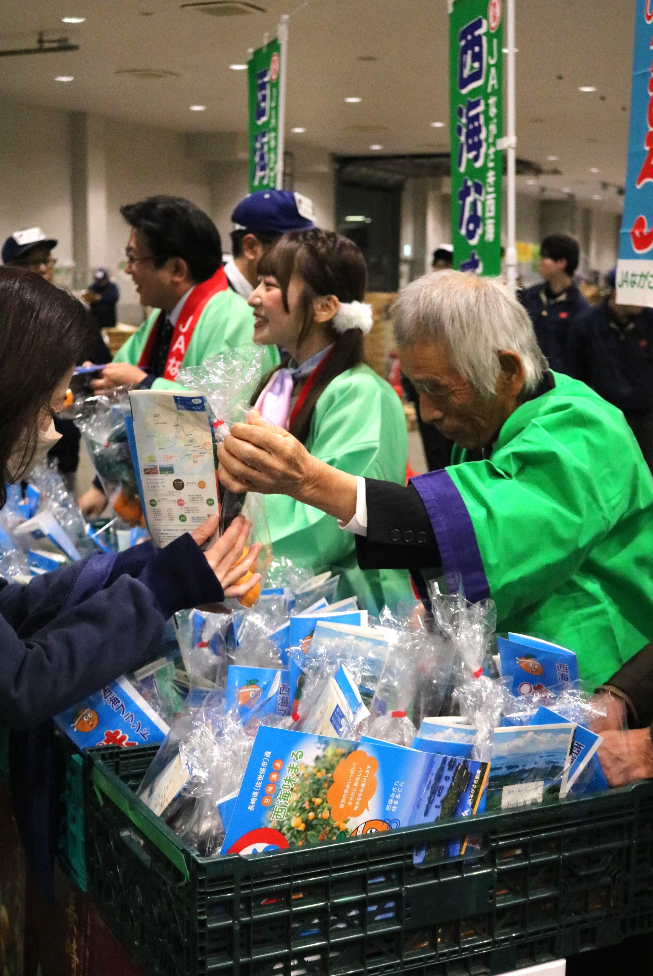 市場関係者の皆様には、みかんと茄子のセットが配布されました!