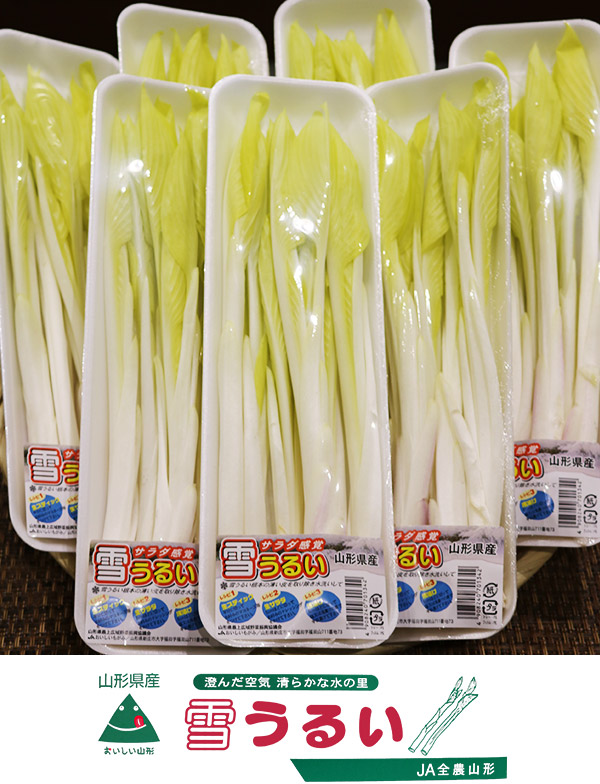 「うるい」はオオバキボウシの若芽で癖がなく、独特のぬめりとサクっとした歯ごたえが楽しめます。お浸し、あえ物、天ぷら、煮物等の料理と相性抜群のオールラウンダー。光を遮断することで白さと柔らかさを強調した「雪うるい」は、生でも美味しく食べられる新食感食材です。しいたけとなめこは通年出荷されています。
