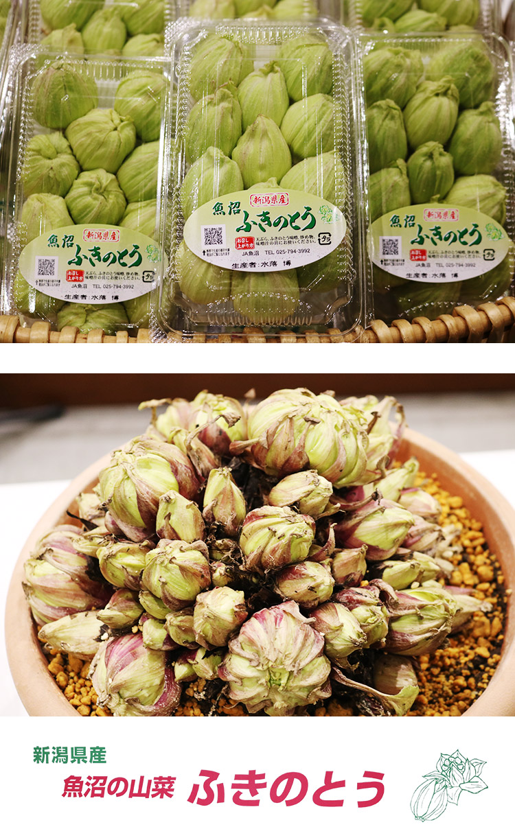 ※促成山菜は、自生しているものより収穫・出荷を早めて栽培することをいい、JA魚沼では40年の歴史があります。