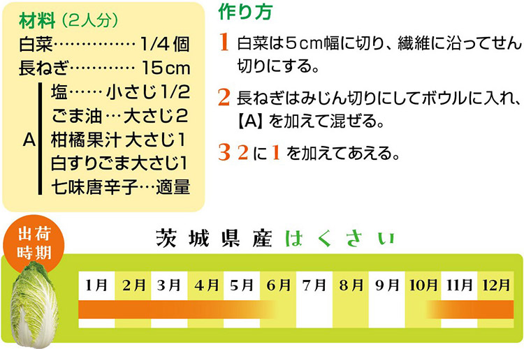 白菜の甘みと柑橘果汁のさっぱりとした風味で、季節を問わず食べたい一品です。