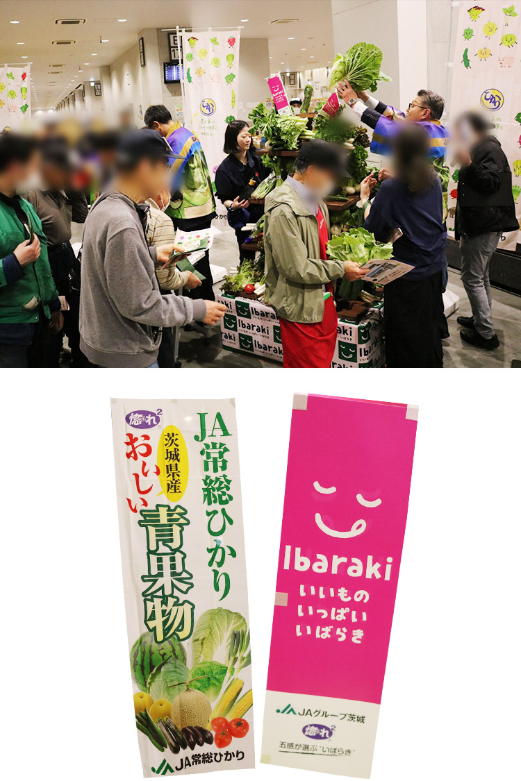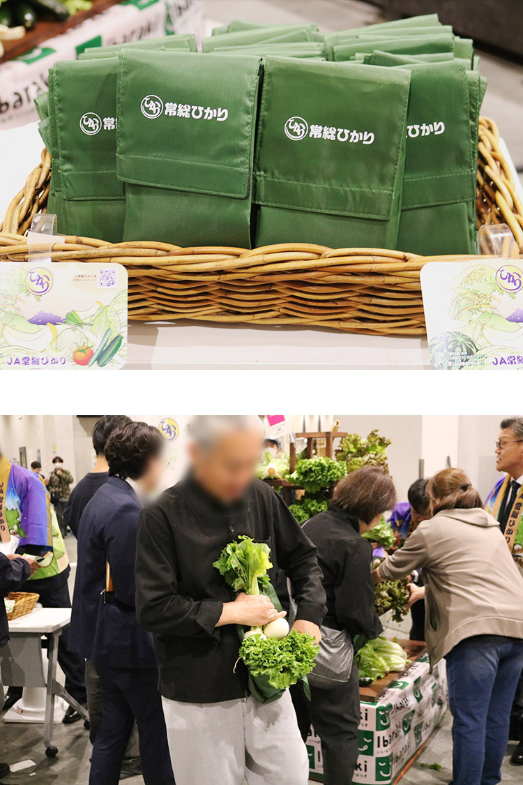 JA常総ひかりオリジナルエコバッグにお好きな青果を1つずつお持ち帰りいただきました。