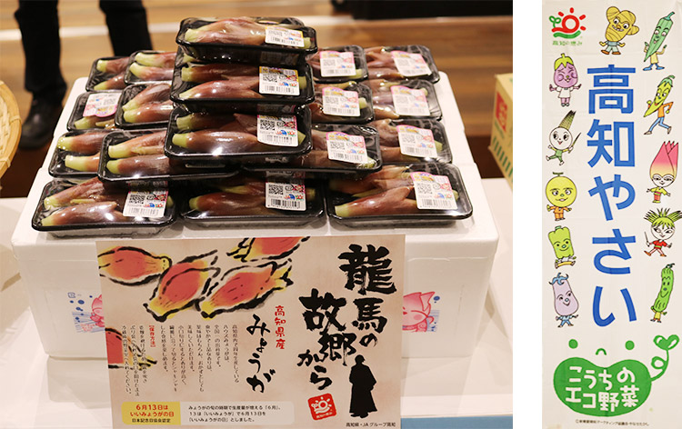 高知県産青果物の外箱には、高知県出身の漫画家やなせたかし氏がデザインしたキャラクターが印字されています。JA土佐くろしおのキャラクター「とさっ子みょうがちゃん」もキュートです。ぜひチェックしてみてください!